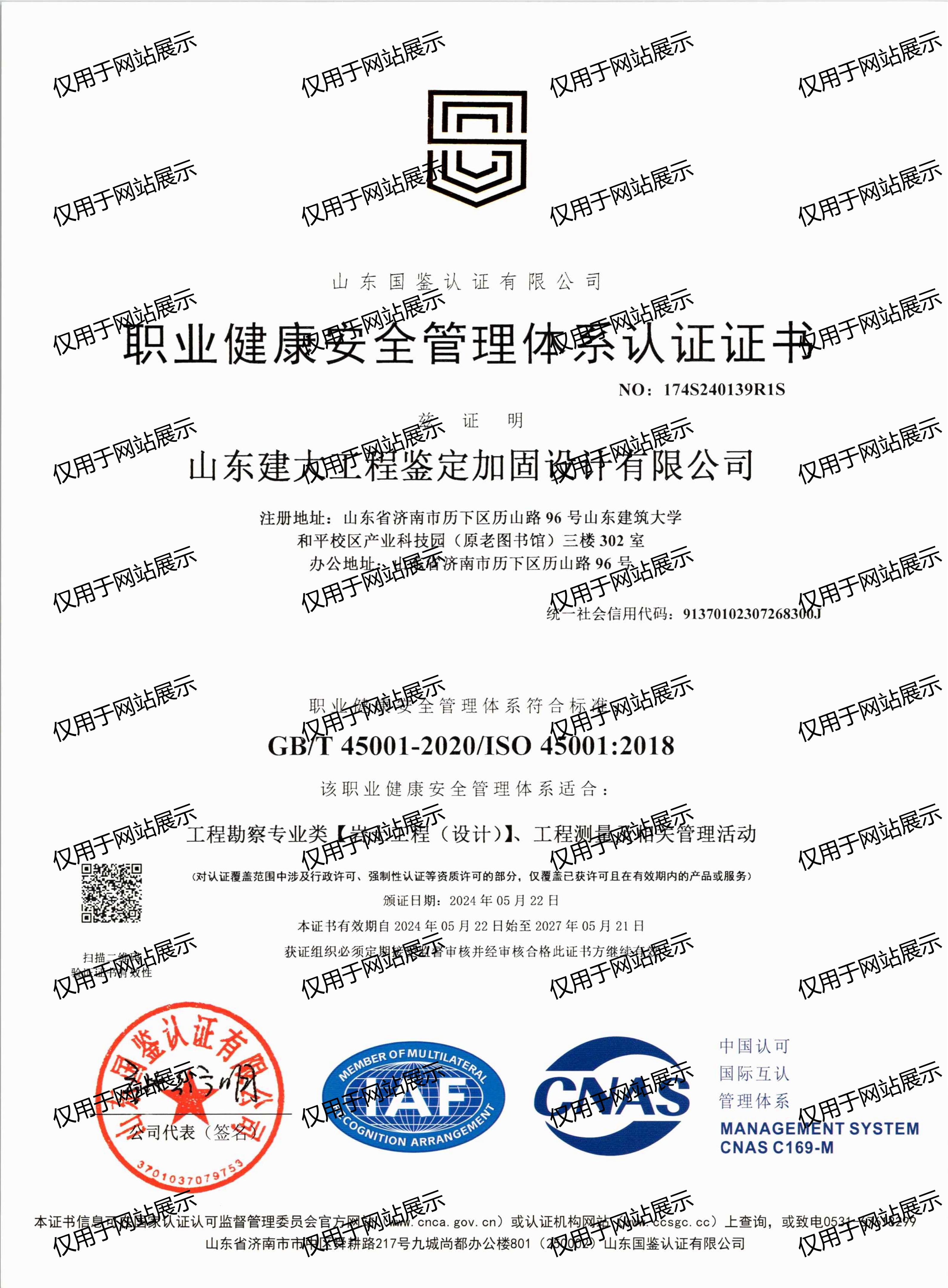 職業(yè)健康安全管理體系認(rèn)證證書(shū)