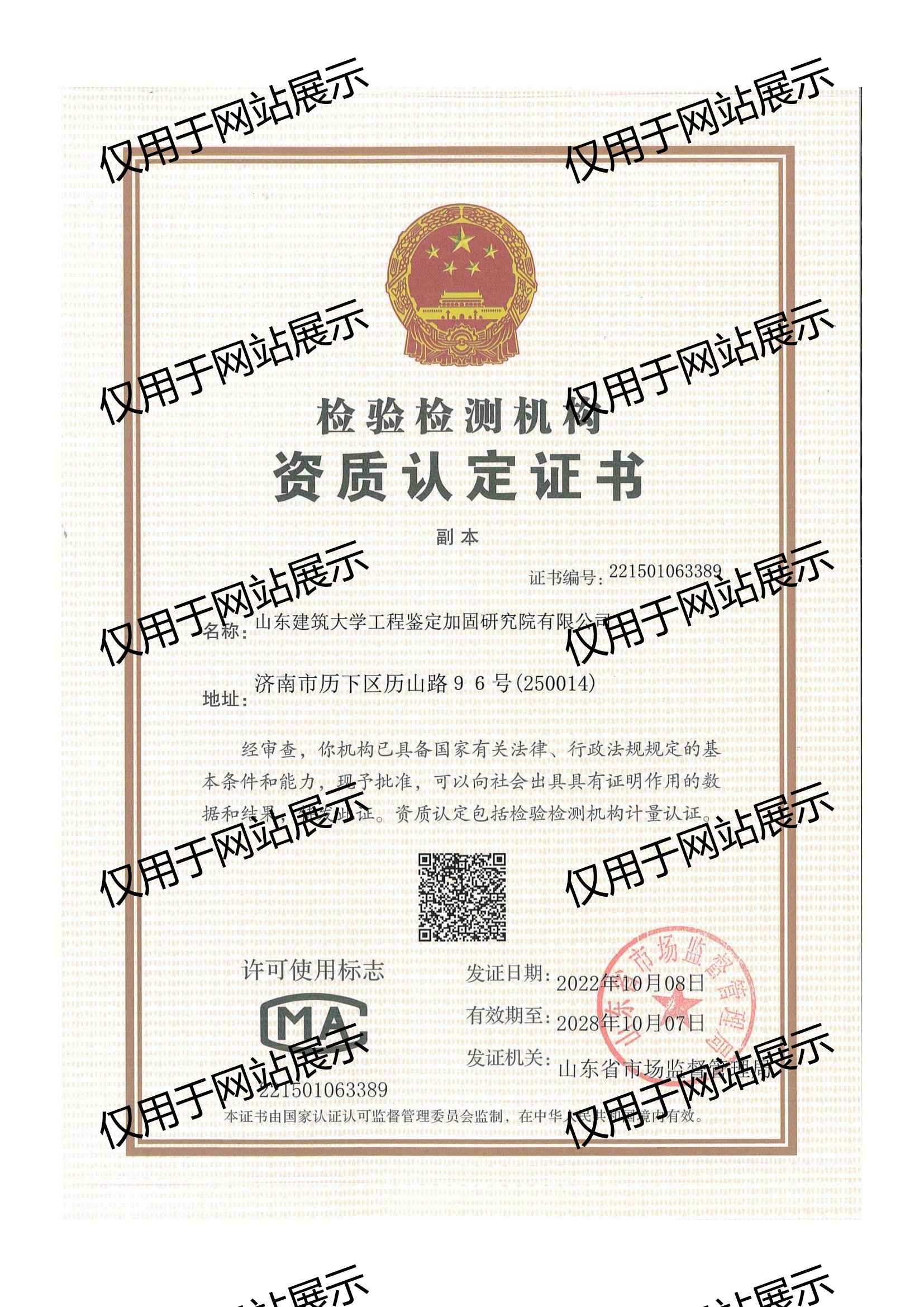 檢測(cè)資質(zhì)證書(shū)