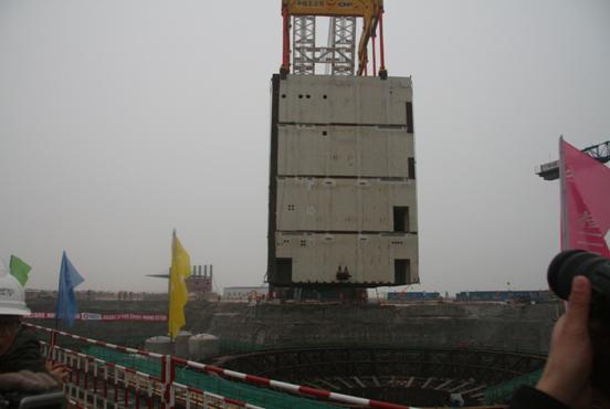 圖5 大型吊裝構(gòu)件正在吊裝核島工作室(1000多噸)