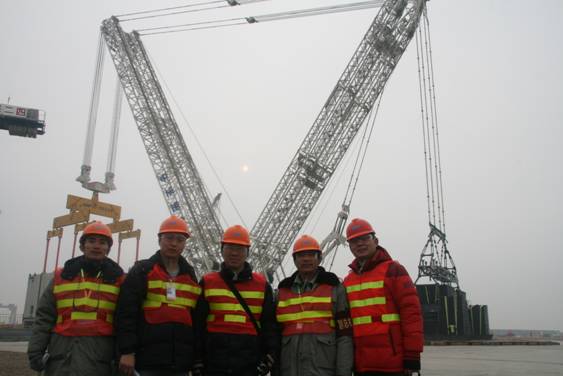 圖7 加固所人員與中核五公司海陽總承包部的管理人員在大吊車現(xiàn)場