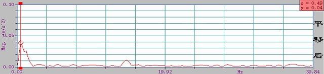 平移后的測(cè)試結(jié)果:根據(jù)實(shí)測(cè)的實(shí)時(shí)譜曲線(xiàn),平移后二層樓面振動(dòng)測(cè)點(diǎn)的主頻為0.49HZ(振動(dòng)周期2.04s)。