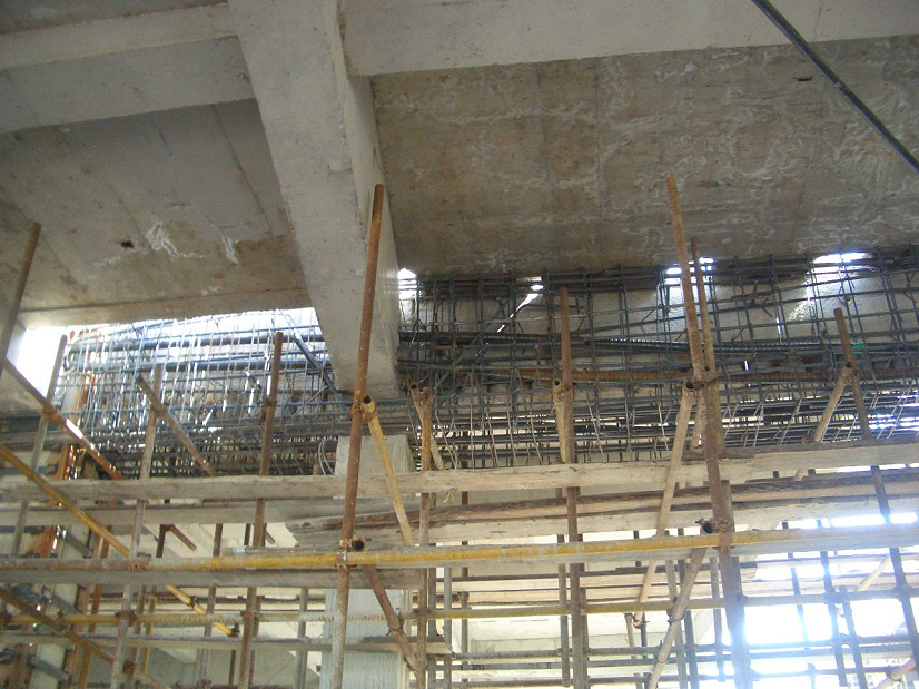 青島奧帆賽場(chǎng)31號(hào)東西地塊商業(yè)中心,地下二層,地上三層(局部四層),框架結(jié)構(gòu),由于商業(yè)布局改變,拆除1~2層共六棵框架柱,拆除后框架梁跨度18米。采用有粘結(jié)預(yù)應(yīng)力加固原有框架梁,我單位設(shè)計(jì)施工。