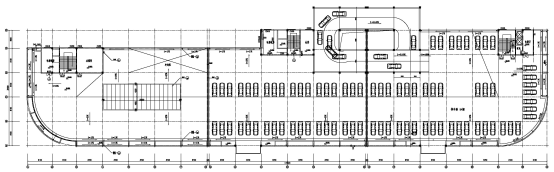 根據(jù)經(jīng)營要求,建筑物東側(cè)單體需進(jìn)行加層改造,加層后,原五層頂屋面變?yōu)榱鶎?,作為車庫或?jīng)營使用,原五層新世紀(jì)影城搬遷至新建七層。加層設(shè)計(jì)時,結(jié)構(gòu)標(biāo)高布置需在滿足影廳凈高要求的同時兼顧新加樓層與周邊建筑物車道的交通銜接、屋頂涼水塔、影院放映廳、已有樓梯、電梯等,平面、剖面布置較為復(fù)雜,剖面見圖2。