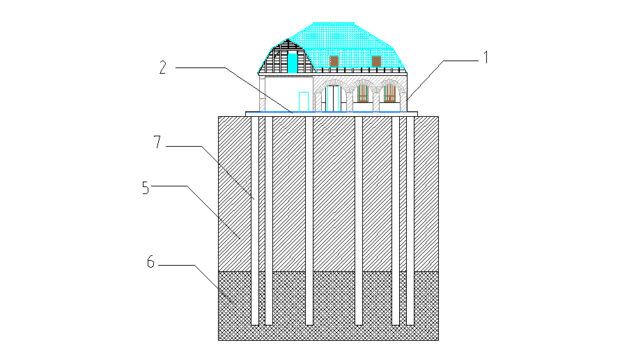 濟南皮膚病醫(yī)院位于濟南市中山公園東老商埠一期地塊內(nèi),歷時百年,為仿德式歷史風貌建筑。該建筑物為單層帶局部地下室的砌體結(jié)構(gòu),建筑面積約165.08平方米,其南立面見圖8。山東融匯建設(shè)開發(fā)有限公司在對該地塊開發(fā)的同時,本著保護文物傳承文化的目的,擬對該建筑原址保護,并在其下方增設(shè)三層地下停車場。