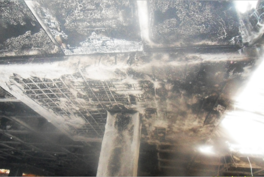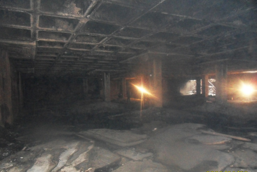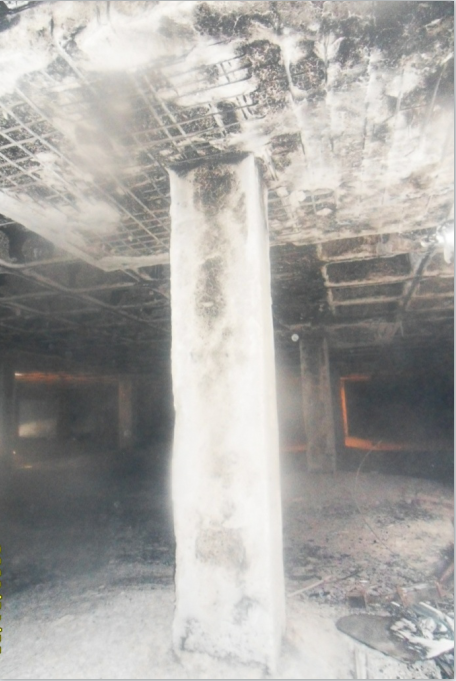 茌平縣安居康城16#-17#樓地下車庫總建筑面積3767.18m2,車庫混凝土澆筑時(shí)間是2012年12月11日-13日,2013年01月11日17:40左右,車庫樓板下方的塑料模殼著火,約1小時(shí)后消防隊(duì)員撲滅火災(zāi)。