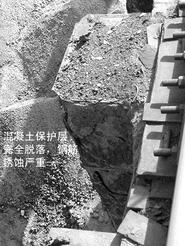 濟南鋼鐵廠除渣車間,吊車梁鋼筋銹蝕,混凝土疏松。通過我所對其進行鑒定及加固,滿足了安全使用要求。