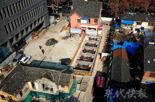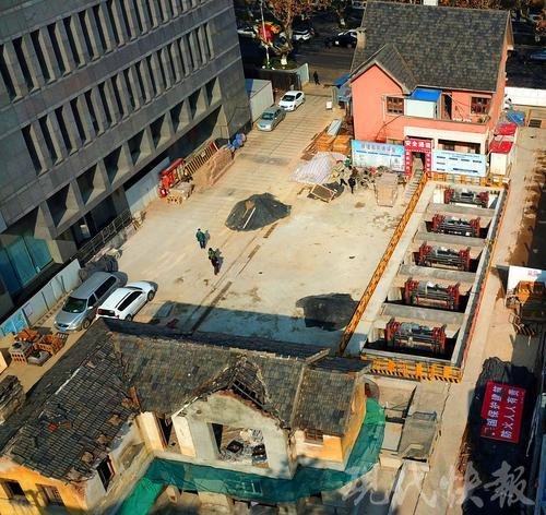 這兩棟建筑分別是北京西路 57 號和天目路 32 號。2015 年 10 月 7 日,為建南京市天目大廈地下停車庫工程,施工方開始進場施工。上海建工二建集團負責此次項目的工程師尚鋒告訴記者,建設(shè)這處地下車庫時,可利用的空間很小,為了最大可能地保護這兩棟歷史建筑的風貌并減少揚塵等污染,他們采取地上地下同時施工的方式。